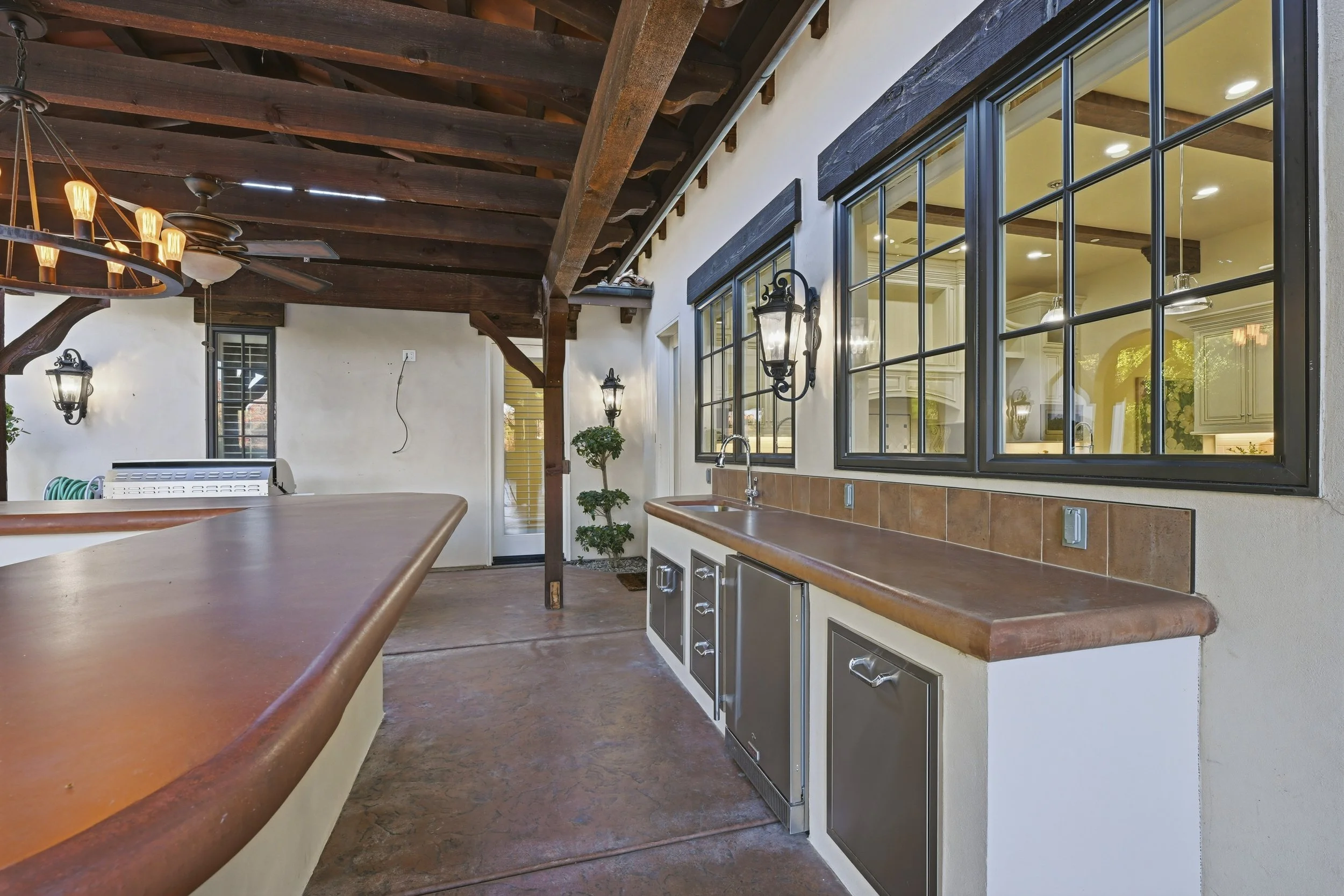 Welcome to this stunning 5,000 sq. ft. custom home nestled in the exclusive Los Lagos community. This elegant residence offers 5 spacious bedrooms, 5 beautifully appointed bathrooms, and a versatile game room, perfect for entertaining family and friends. Soaring ceilings with rich wood beams and expansive windows fill the home with natural light, creating an inviting and airy atmosphere. The gourmet chef's kitchen is a true showpiece, featuring custom cabinetry, exquisite granite countertops, high-end fixtures, and premium appliances. Every detail of this home has been thoughtfully designed, from the custom flooring to the impeccable finishes throughout. Step outside to your private oasis, an entertainer's dream with a sparkling pool, lush landscaping, and a covered patio complete with an outdoor kitchen. Additional highlights include an oversized 1,402 sq. ft. 5-car garage with one bay extended to 28.5 feet deep, as well as a Generac generator to ensure uninterrupted power at all times. Experience luxury, comfort, and sophistication in one of the Valley's most sought-after gated communities. Don't miss this rare opportunity to own in Los Lagos!